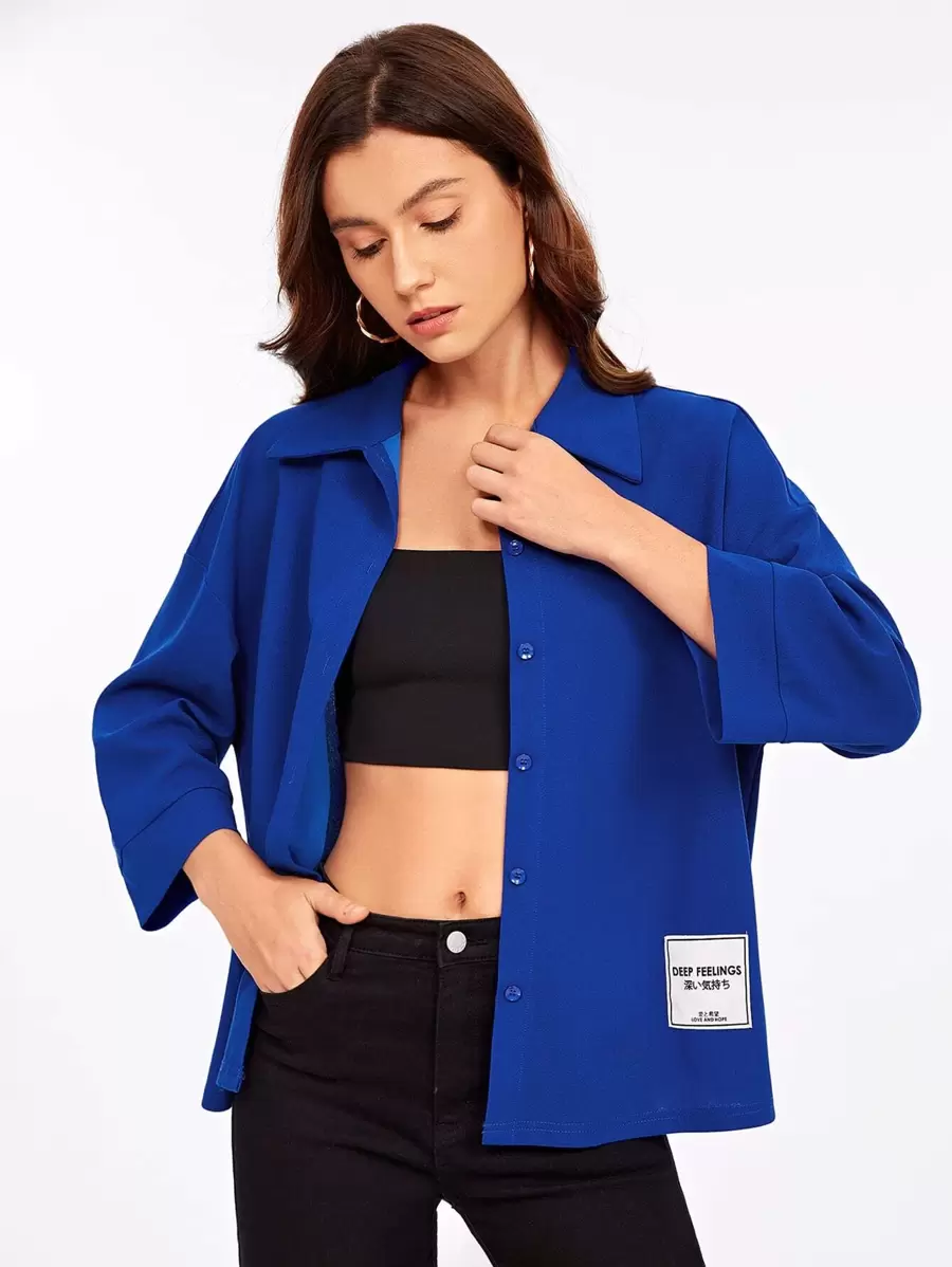 Mulvari Letter Patched Drop Shoulder Shirt