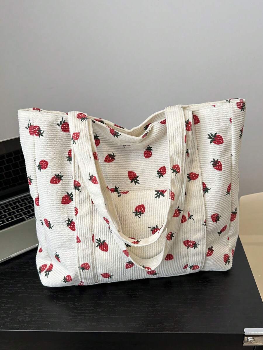 1 Pc Minimalist Fashion Printed Fabric Tote Bag Zipper Opening Shoulder Bag Suitable Daily Casual Use, Large Capacity Bag For Women, School Bag, Large Capacity, Portable, For Teen Girls Women College Students, For Teens, School Supplies, School Handbag, School Tote Bag, School Bookbag, Back To School Bags, Lightweight, Foldable, Classic Casual, Cute, Suitable For Teen Girls Women College Students, Perfect For Back To School, First Day Of School, Holiday, Beach, Vacation, Concert, Tote Bags For School,College Essentials