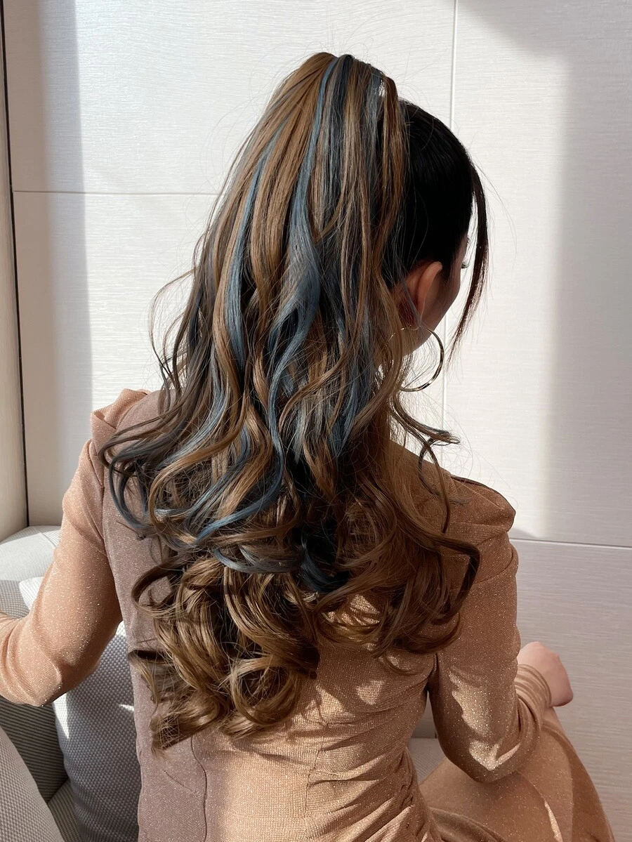 26-28 Inch Long Wavy Synthetic Hair Ponytail Extensions, Heat Resistant Fiber, Natural Brown Color, Claw Clip Design, Suitable For Daily Wear