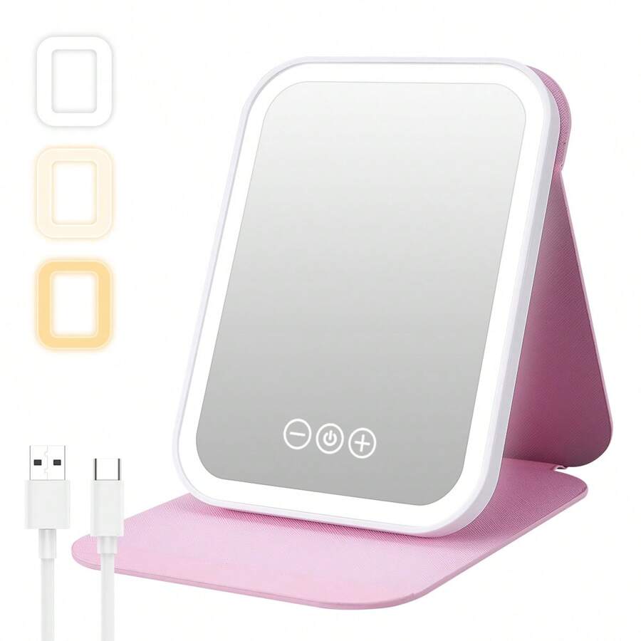 M MISS DREAM Travel Makeup Mirror With Lights, Portable Lighted Beauty Mirror, 3 Color Lighting, Dimmable Touch Screen, Rechargeable And Floding Tabletop LED Make Up Mirror.