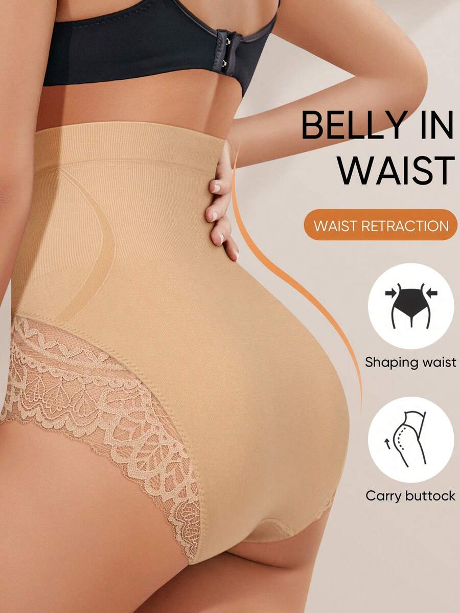 MEIYATING High Waist Slimming Seamless Lace Pattern Briefs For Women