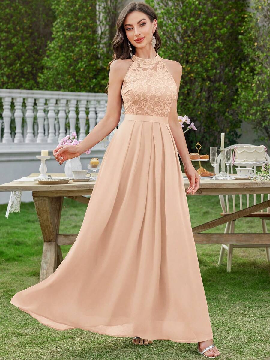 MIUSOL Backless Lace Ruffle Chiffon Formal Party Maxi Dress
