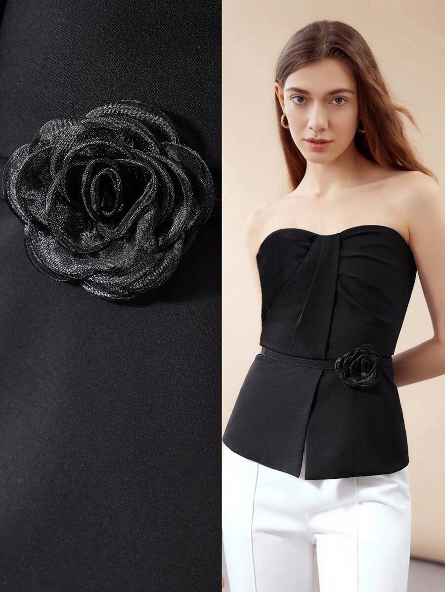 MOTF PREMIUM BELTED 3D FLOWER ROSETTE TUBE TOP