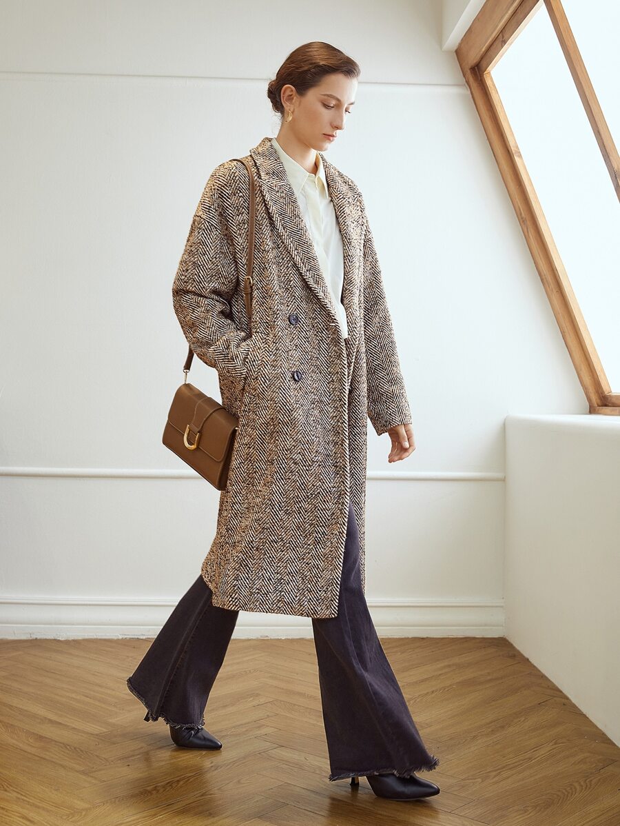 MOTF PREMIUM HERRINGBONE DOUBLE BREASTED OVERCOAT