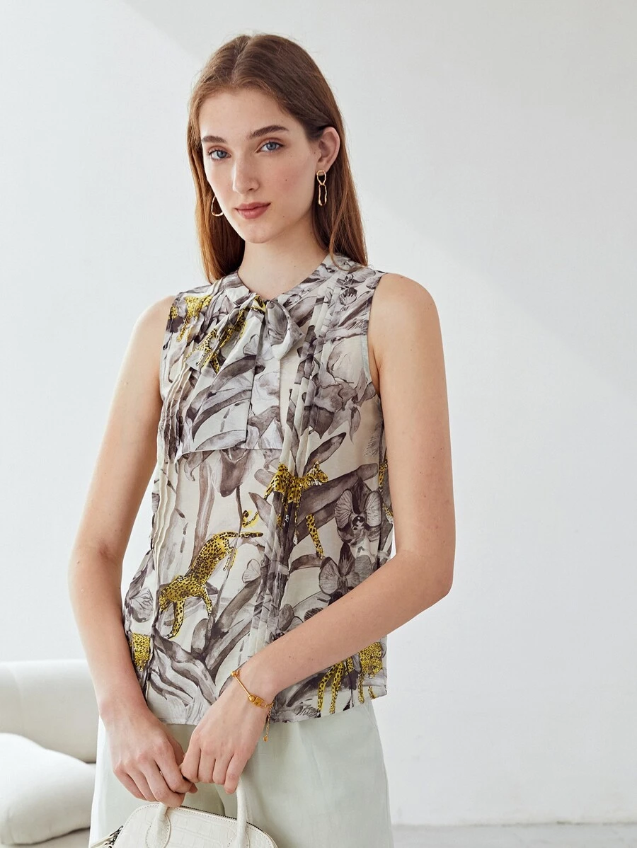 MOTF PREMIUM LINEN CHEETAH PLEATED TOP