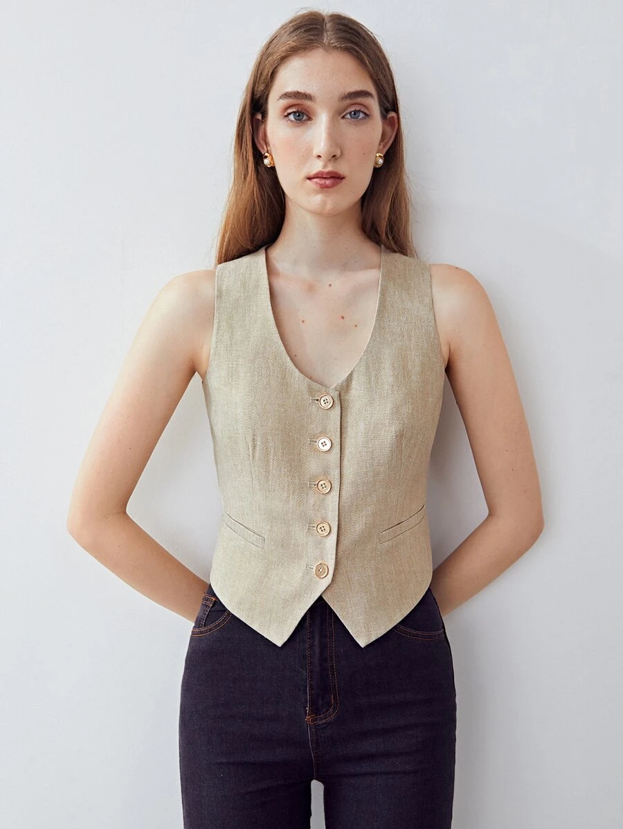 MOTF PREMIUM LINEN GOLD SHIMMER FABRIC WAISTCOAT