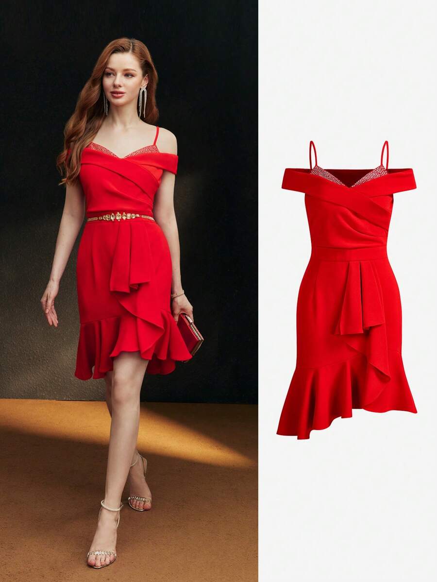 Backless, Ruffle Hem, Zipper,Yes,Spaghetti Strap