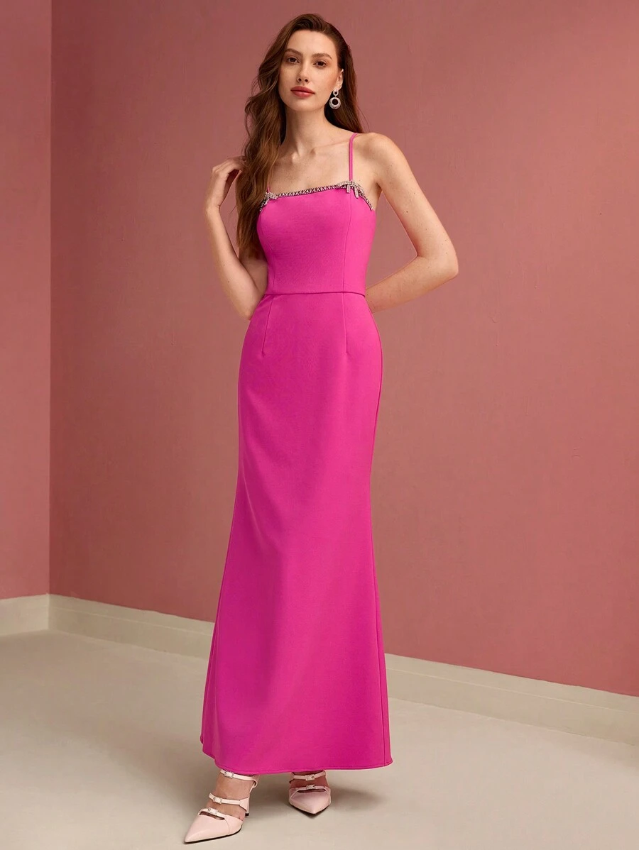 MOTF PREMIUM RHINESTONE DETAIL BIAS CUT CAMI COCKTAIL DRESS - Hot Pink - View 2