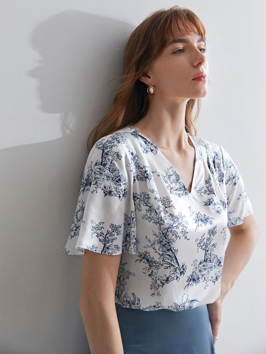 MOTF PREMIUM SILK PRINTED FLUTTER SLEEVE TOP