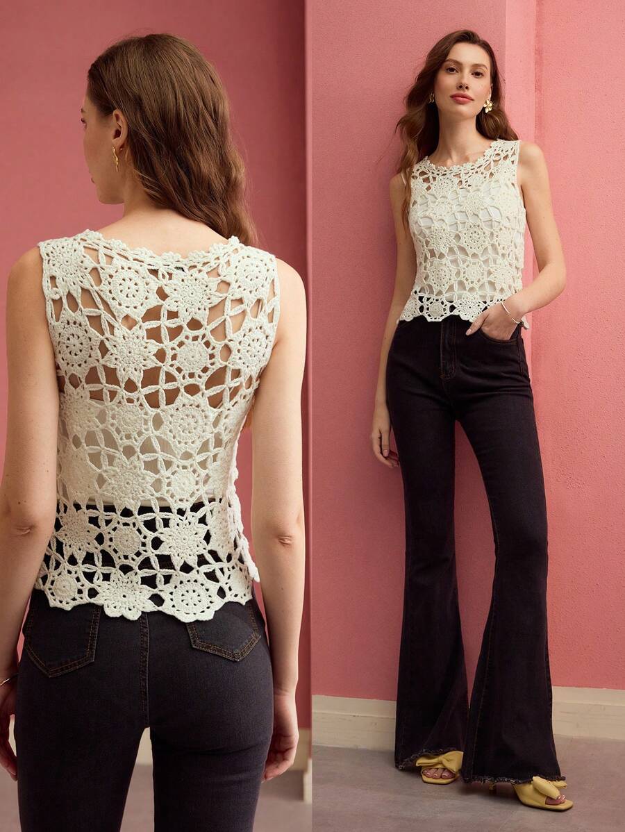 MOTF PREMIUM WEAVE HOLLOW OUT SWEATER VEST