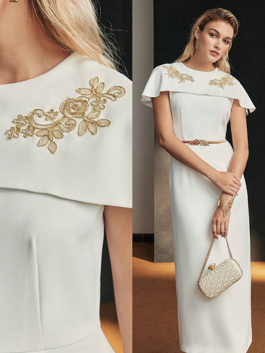 • MOTF Soiréza FLORAL EMBROIDERY FITTED EVENING DRESS - White - View 3