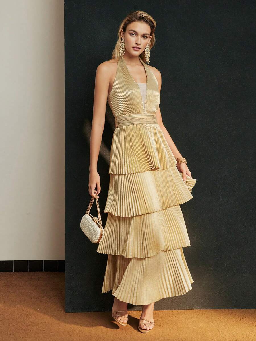 MOTF Soiréza HALTER NECK LAYERED RUFFLE HEM PLEATED COCKTAIL DRESS