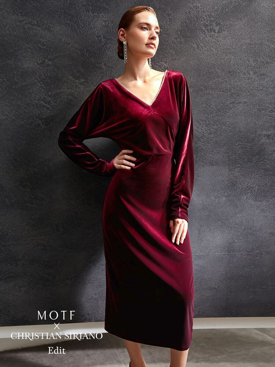 MOTF VELVET RHINESTONE DRESS WITHOUT BELT