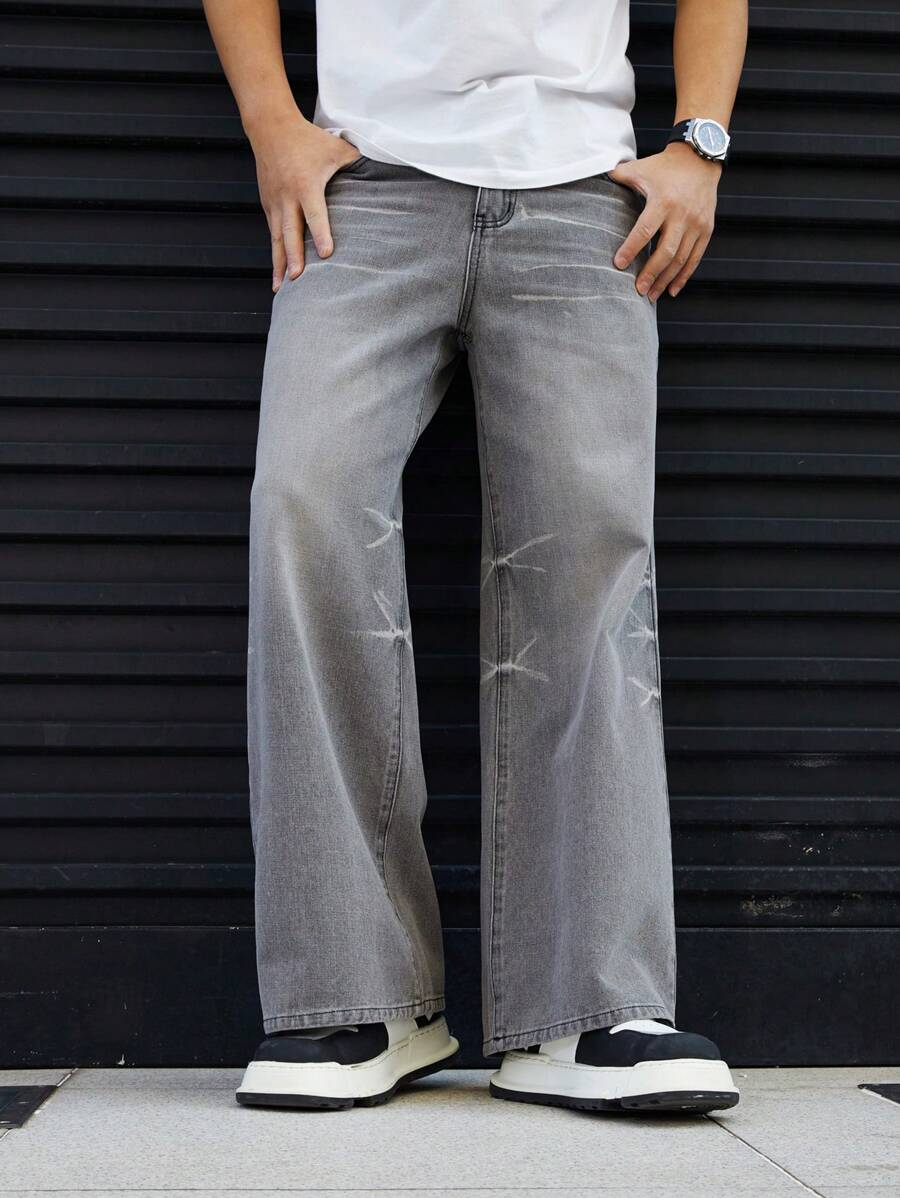 Manfinity Homme Men's Simple Straight Leg Jeans With Pockets, Casual Everyday Wear