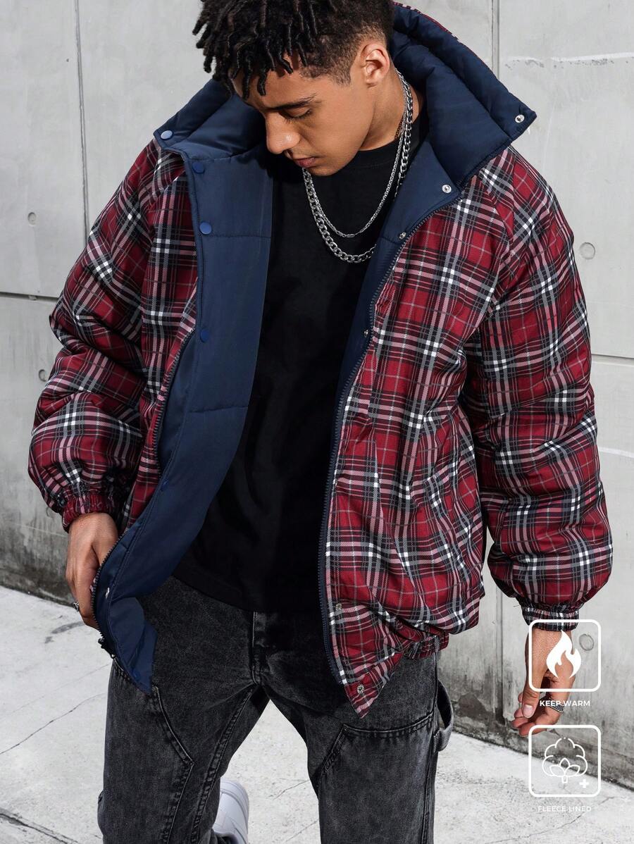 Manfinity Hypemode Men's Reversible Casual Loose Short Winter Jacket, Winter Clothes,Christmas