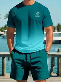 Men's Summer Short Sleeve T-Shirt And Shorts Set, Personalized Letter Print Pattern, Fashion Casual Outfits With Pocket, Drawstring Waistband Pants, 2 Pieces Set Suitable For Running, Golf, Fishing, Basketball, Camping, Gym, Swimming And Beach, Great Gift For Husband Or Boyfriend #1 Bestseller