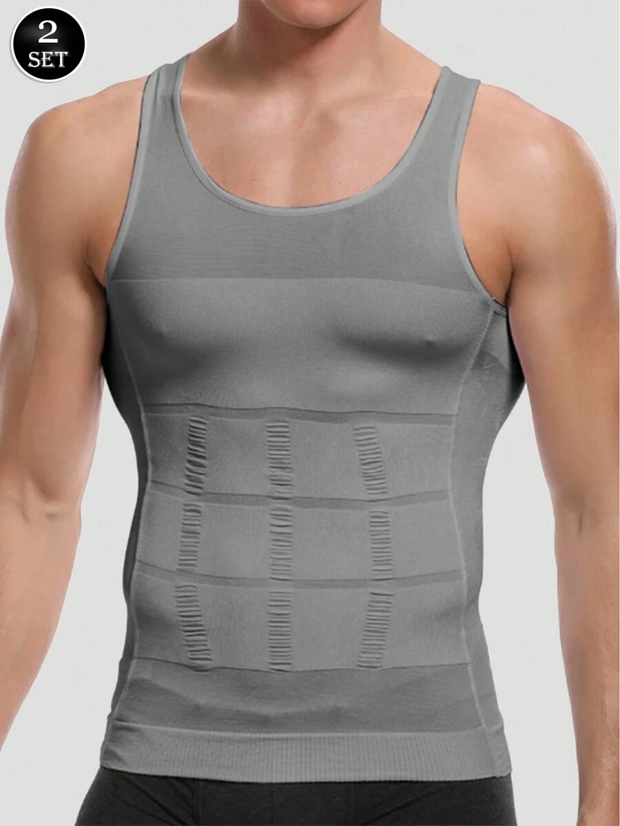 Men's 2 Pcs Compression Shirt Slimming Body Shaper Vest Gym Workout Tank Top Sleeveless Abdomen Shapewear Gynecomastia Compression Shirts, Tummy Control Undershirts - Change In Seconds