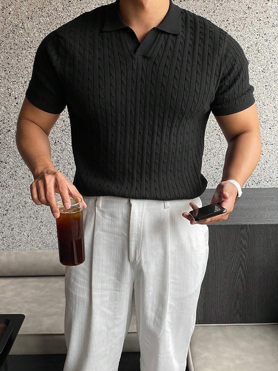 Men Plain Simple Casual Short Sleeve Knitted Top