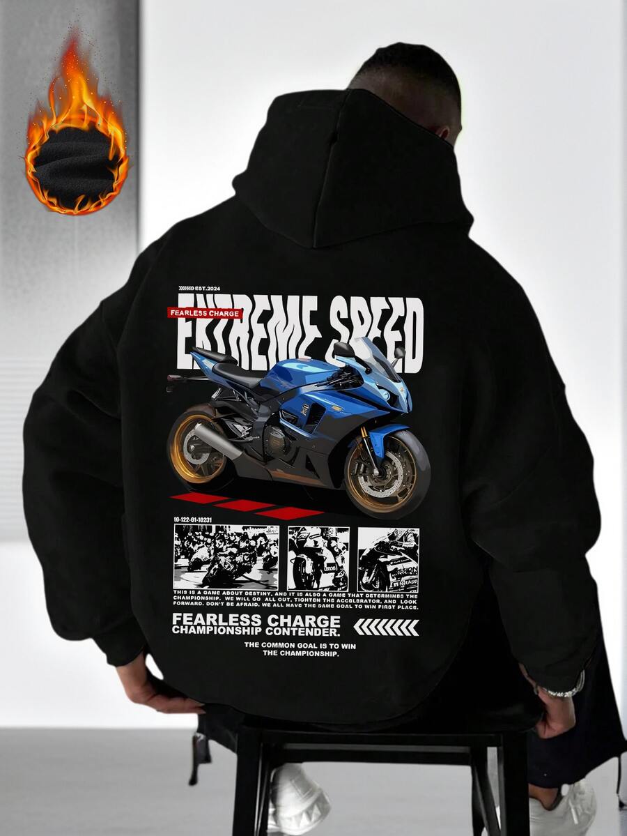 K-GLORY Men's Motorcycle Racing Themed Print Loose Kangaroo Pocket Hoodie, Autumn/Winter