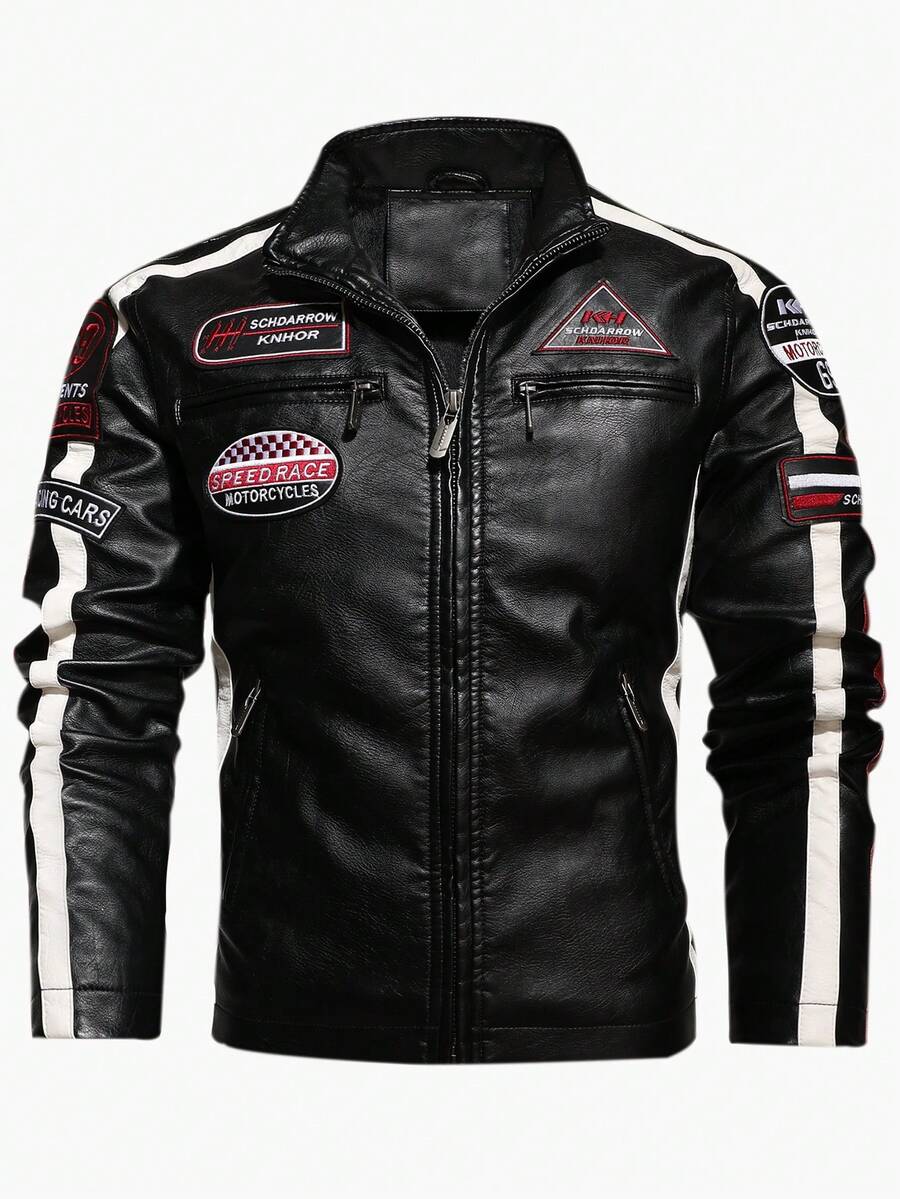 Men's PU Leather Jacket, Contrast Color Design With Thermal Lining, Motorcycle Racing Style Outerwear, Fashionable For Autumn/Winter