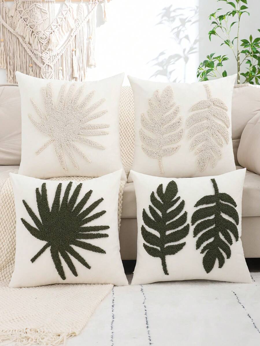 Miater 1pc Plush Leaf Pattern Embroidered Cushion Cover, Suitable For Living Room Sofa Decor In Summer
