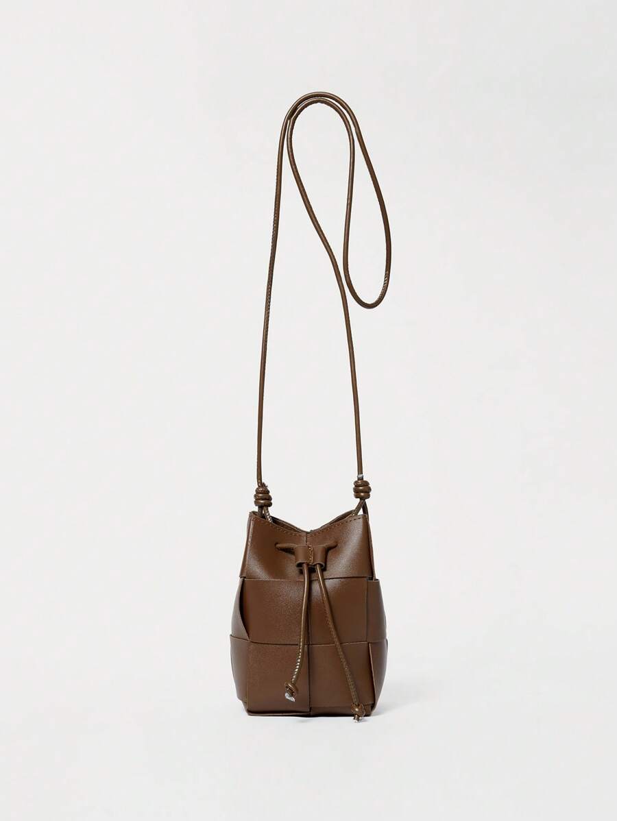 Mini Casual Woven Texture Drawstring Design Crossbody Bag