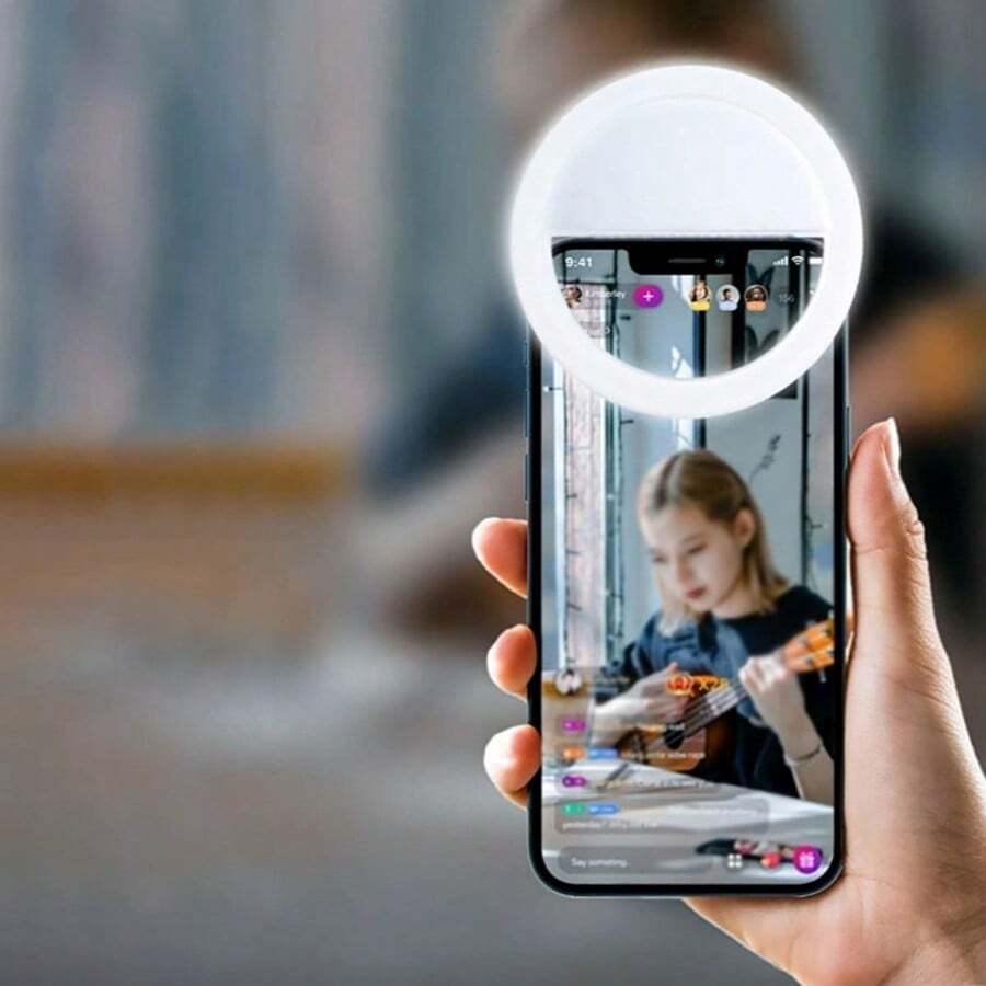 1pc White/Pink Portable Selfie Ring Light With UsBCharging, Photo Shoot, Beauty, And Skin EnhancementFunctions