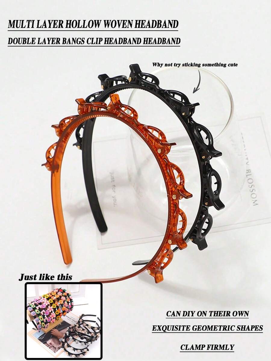 1/2pcs Women's Woven Headband, Double-Layer Hollow Pressure Hair Hoop, Bangs Hairband Decor, Suitable For Daily Outing, Casual, Party, Commuting, Vacation, Face Washing, Makeup, Summer Outfit Matching And DIY, Summer Hair Clip, Headband, Cute Hair Accessories