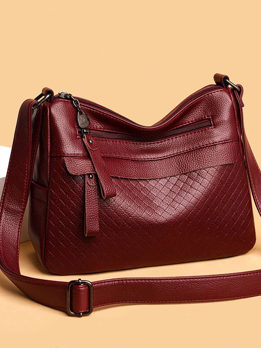 Multi-Pocket Large Capacity Diagonal Shoulder Bag, Quilted Woven Texture Shoulder Bag For Mothers