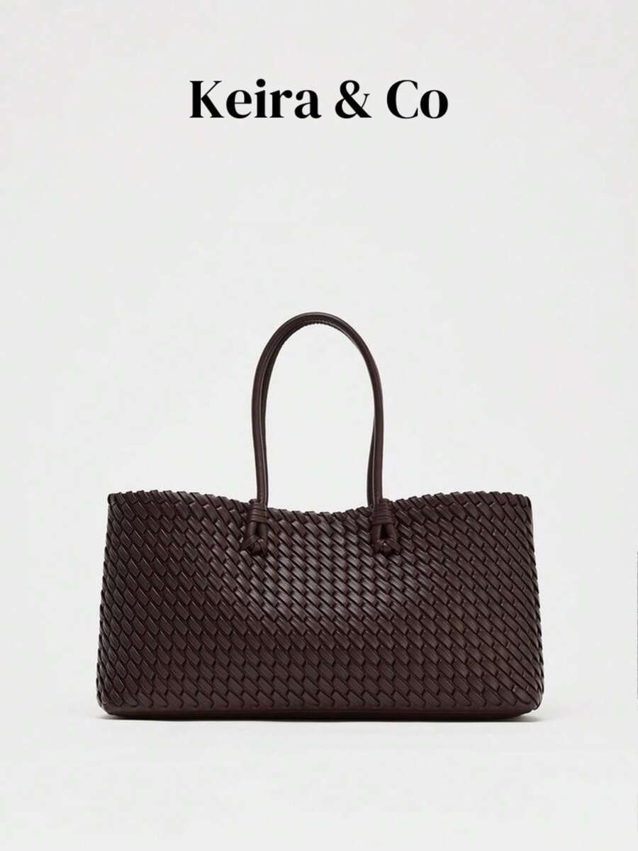 [Women's Shoulder Bag] WOVEN TOTE BAG, Fashionable Top Handle Bag, Solid Color Simple Shoulder Bag, Women's Handbags Luxury Design For Everyday Style