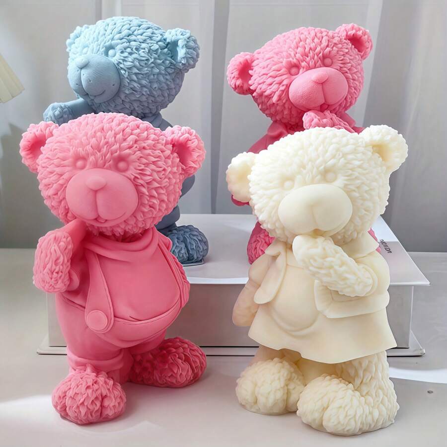 3D Father &Mother &Son Teddy Bear Candle Silicone Mold DIY Cute Bear Mold For Candle Plaster Resin Clay Making, Home Ornaments Party Decoration