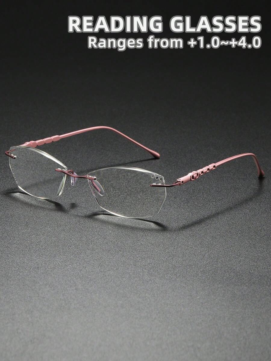 NRDZQ Women's Rimless Rhinestone Reading Glasses, New Fashion Rhinestone Rimless Diamond-Cut Edge Metal Reading Glasses