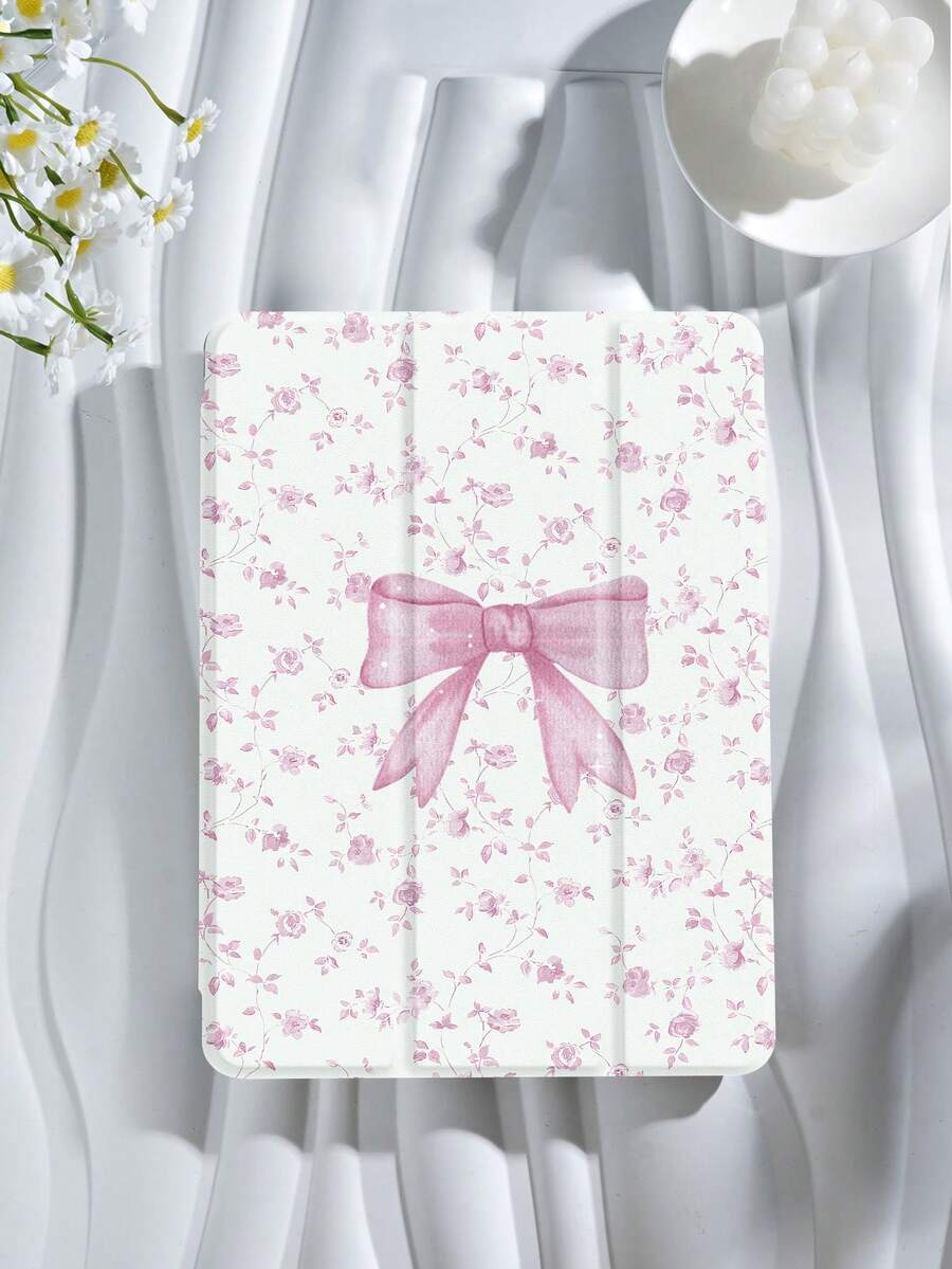 Pink Rose & Bow Design Tablet Protective Case, Compatible With Ipad 9.7/10.2/10.5/10.9/12.9/Pro 11 (10th Gen), Galaxy Tab S6 Lite 10.4", Kindle Paperwhite 12th Gen (2024), Kindle 11th Gen (2022), Soft Shock-Proof, Smart Stand/Auto Wake/Sleep