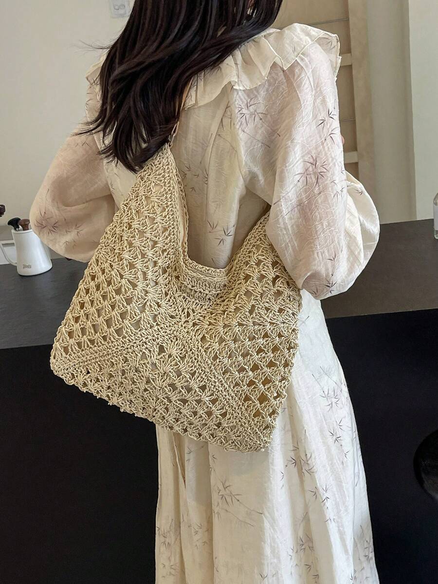 New Simple Handmade Woven Straw Shoulder Bag For Women