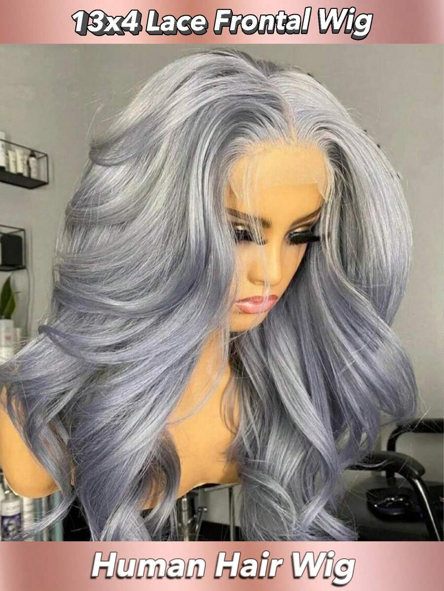 Grey Wig Body Wave 13x4 Transparent Lace Front Wig 32 Inch Human Hair Wigs For Women Pre Plucked Brazilian Remy Hair Lace Wig, Silver Grey Hair Wigs For Halloween Costume, Party Cosplay Use, Gray Hair