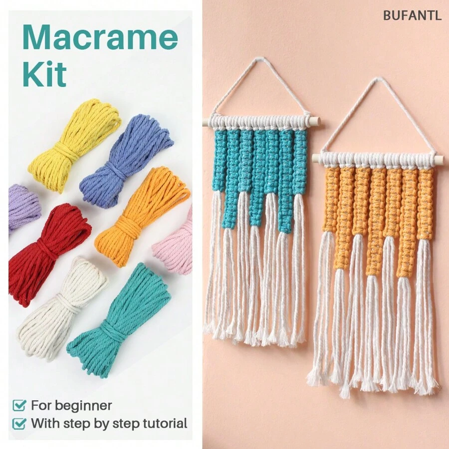 One Set Of Colorful Tapestry Macrame Kit, Which Includes Cut-To-Size Knitting Ropes, Wooden Sticks, And Knitting Tutorials. It's A Tapestry Knitting Set Suitable For Beginners, Used For Making Hand-Knitted Wall Hangings That Are Suitable For Hanging In Dining Rooms, Living Rooms, Bedrooms, And Studies.