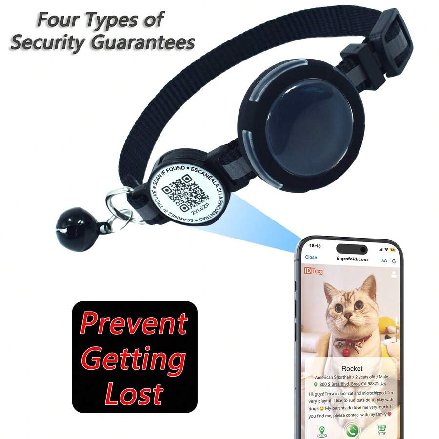 Cat Collar With QR Code ID Tag, Anti-Lost, Airtag Protective Case, Luminous Reflective Strips For Night, With Bell, 4-In-1 Guarantee With Airtag Case And QR Code ID Tag