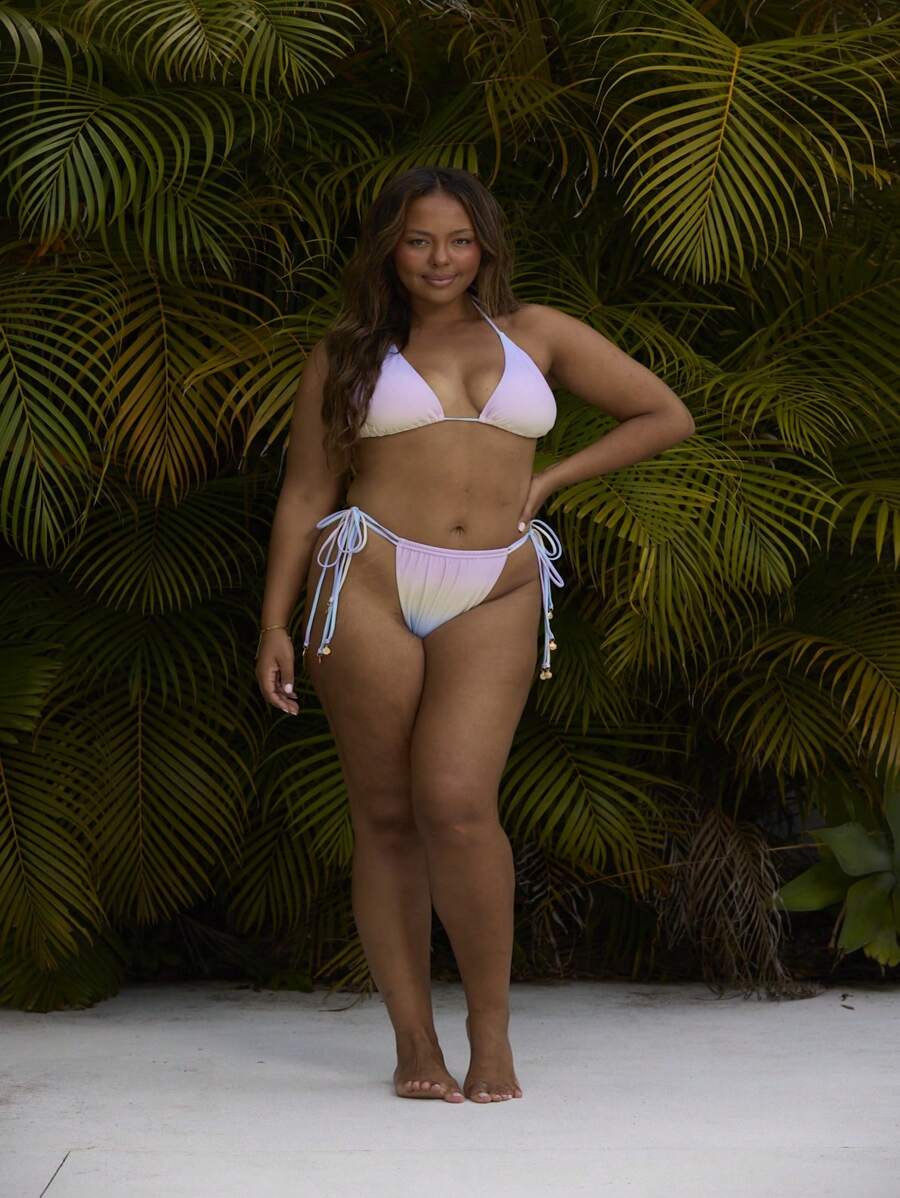 Aralina Plus Size Curve Double Side Tie Ombre Print With Gold Shell Charms Cheeky Fit Bikini Bottom Summer