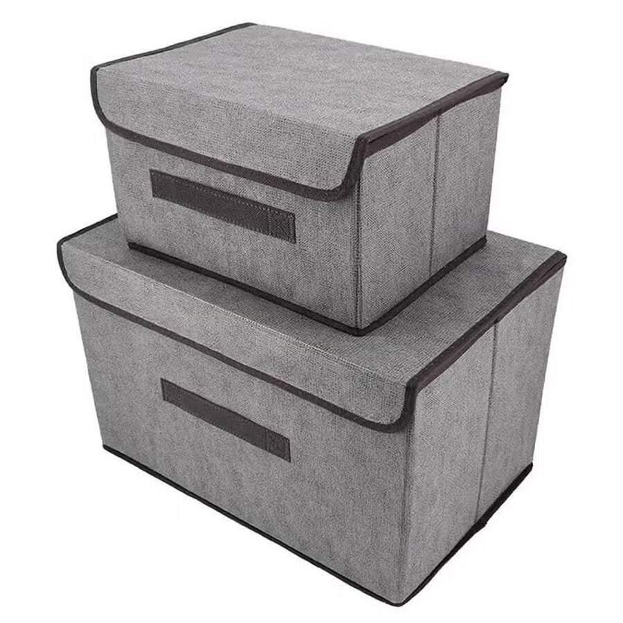 Pack Of 2 Foldable Storage Box With Lid Multicolour 36x23x24cm