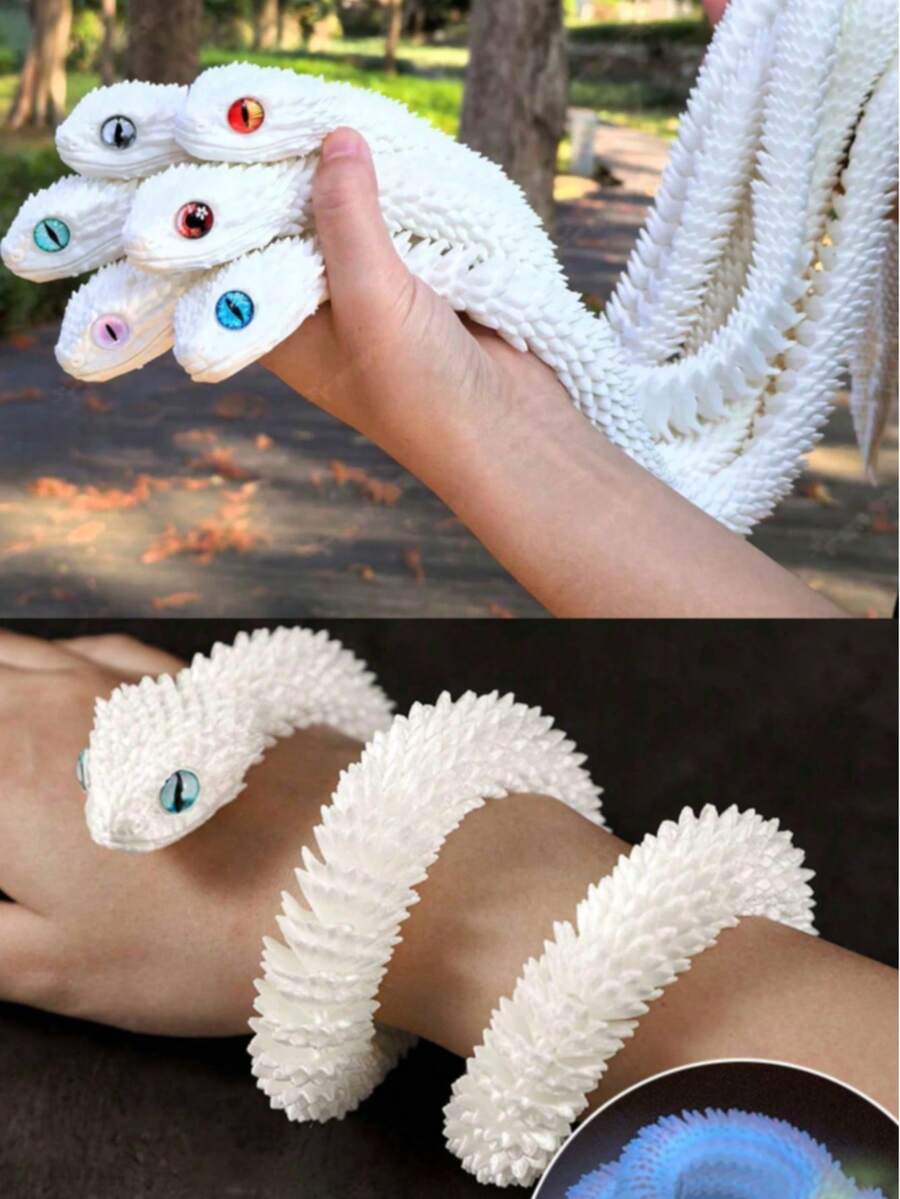 3D Printed Soft Posable Snake Statue - Bionic Animal Model Design, Home Decor, Stress Relief Toy, Sensory Toy, Teenage Toy, Glowing Toy (Random Eye Color)