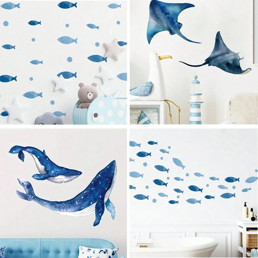 SURELIFE Devil Rays Manta Fish Whale Wall Stickers For Home Bathroom Decor Art Nursery Decals Removable Murals Applicable To Tile Glass Window Watercolor,Stickers,Wall Decal, Vinyl Decal For Home Decorations,Spring Decoration Items Refresh Your Home,Rama Decoration Stickers Gifts Birthday Graduation