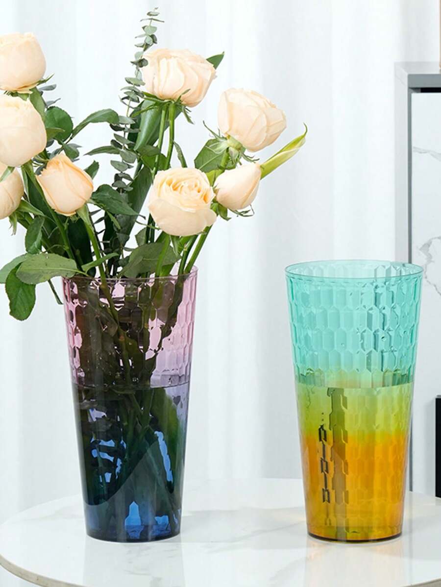 Plastic PET Two-Color Vase High Transparent Multi-Color Flower Bucket Rich Bamboo Rose Hydroponic Container Living Room Flower Arrangement Holiday Vase Gifts Birthday Graduation