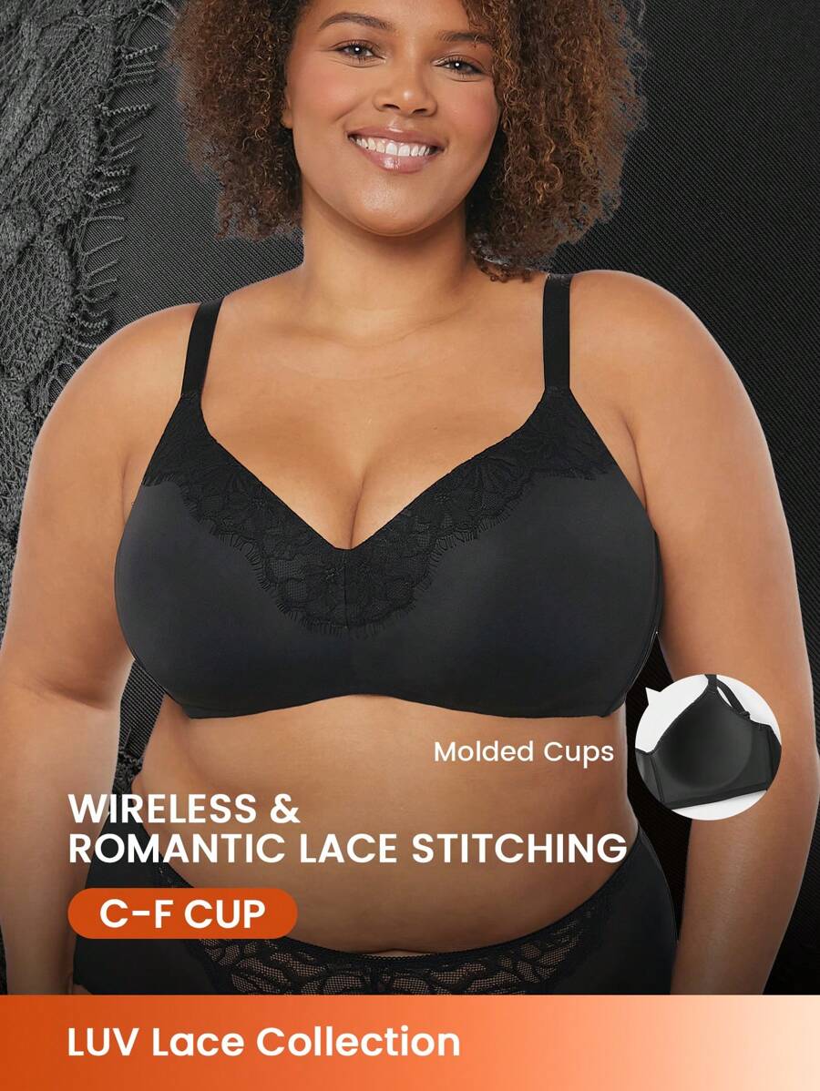 LUVLETTE Plus Black Sexy Lingerie Wireless V-Neck Push-Up Lace Elagance Bra Comfortable Must-Haves