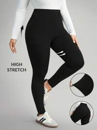 SHEIN EZwear Plus Size Women's Letter Printed High Waist Casual Leggings Autumn/Winter,Christmas,New Year,Thanksgiving,Party,Wedding,Beach,Graduati,Chic,Elegant,Casual,Going Out,Date,Appointment,Commute Women Plus Size Purple Leggings, Casual European & American Style, Outdoor Sports & Fitness Pants, Simple, Soft, Comfortable, High Elasticity, Body-Hugging, For Home, Yoga, Beach, Music Festival, Camping, Hiking, Cycling, Stretching, Cropped, Spring/Summer
