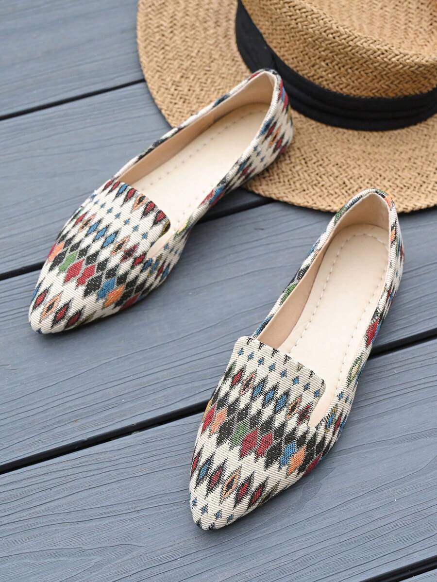Plus Size Women's Fashion Hollow Out Casual Flat Loafers, Comfortable Non-Slip Breathable Slip-On Shoes For Spring, Summer, Autumn, Size 35-45, Daily Wear, Versatile Soft Bottom Pointed Toe Woven Flower Shoes, Slightly Small Sizing, Asymmetrical Patterns, Suitable For Broad Feet, Possible Color Variation Due To Fabric Batches