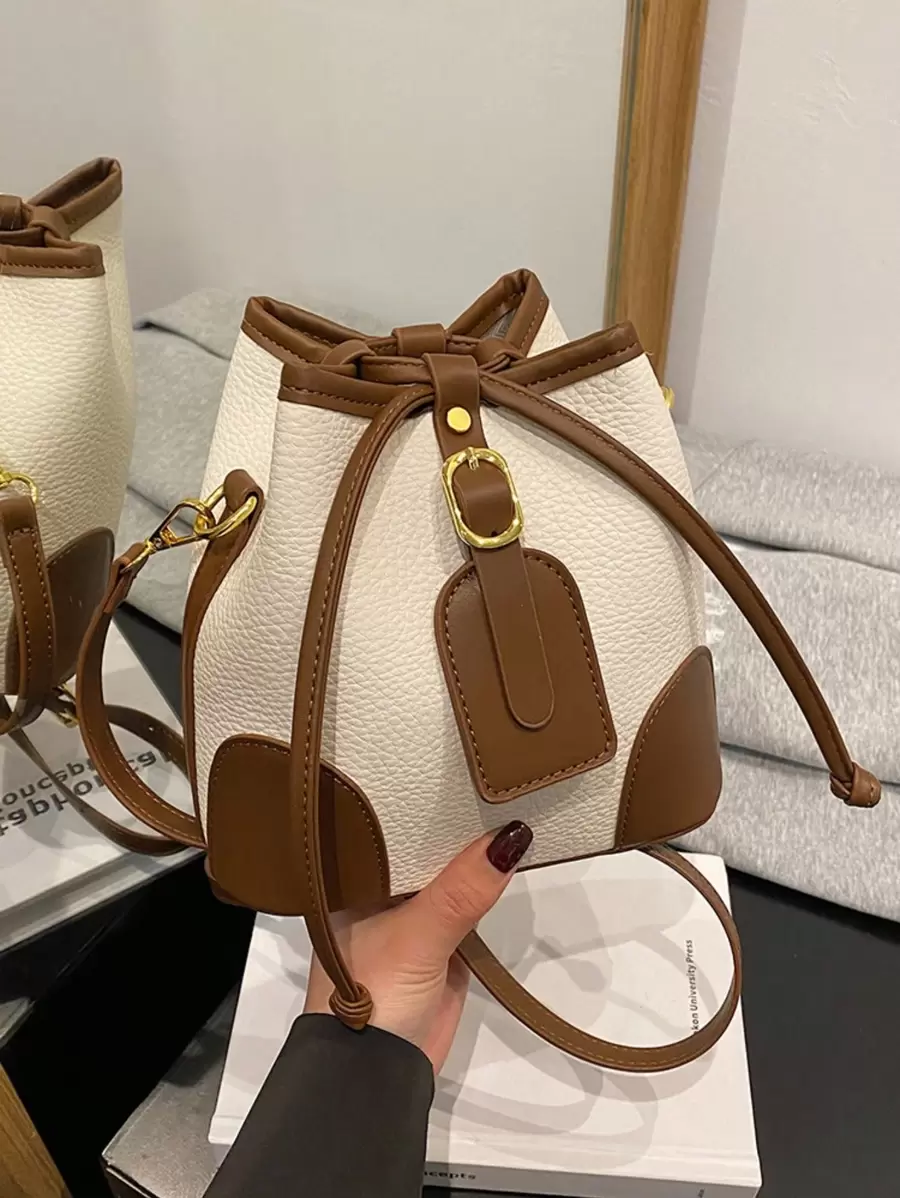 Premium Quality Color Block Drawstring Bucket Bag For Women, Mini Crossbody And Shoulder Bag