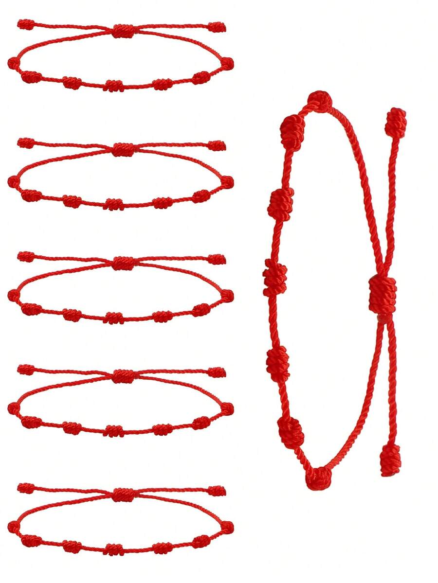6pcs Red Lucky Handmade Braided Bracelets, Minimalist & Personalized, Suit For Friendship Bracelets For Men And Women & Couples, New Year Gift