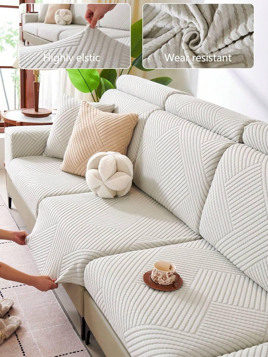 1pc Stretch Thickened Warm Sofa Cover, Non-Slip Full Coverage Sofa Seat Cushion, Suitable For All Seasons, Fabric Sofa Slipcover, Machine Washable, Dust-Proof, Pet-Friendly, Decorative Sofa Protector, Adjustable For Corner Sofa, Bedroom, Office, Living Room 1/2/3/4 Seater