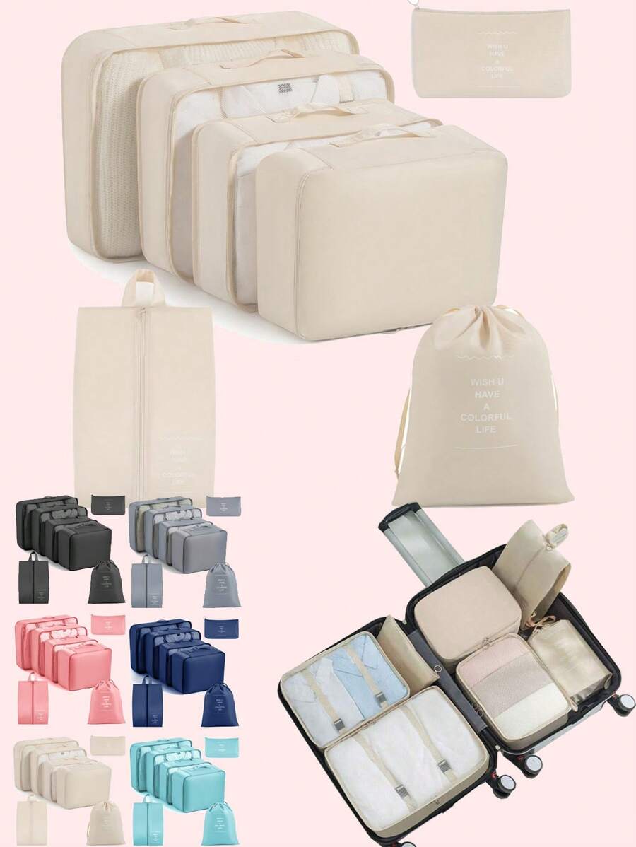 7/1pc Travel Organizer Set, Include Cosmetic Bag, Luggage Organizer, Toiletry Bag, Mesh Bag, Clothes Bag, Skincare Bag, Makeup Brush Bag, Shoe Bag, Bottle Bag & Draw Cord Bag, Suitable For Shirts, Underwear, Clothes, Cosmetics, Lipstick, Eyeshadow, Foundation, Sponge, Brushes, And Toiletries Like Toothbrush, Toothpaste, Face Wash, Toner, Lotion, Cream, For Travel, Hospital, Dorm, School, Vacation, Back To School Essentials