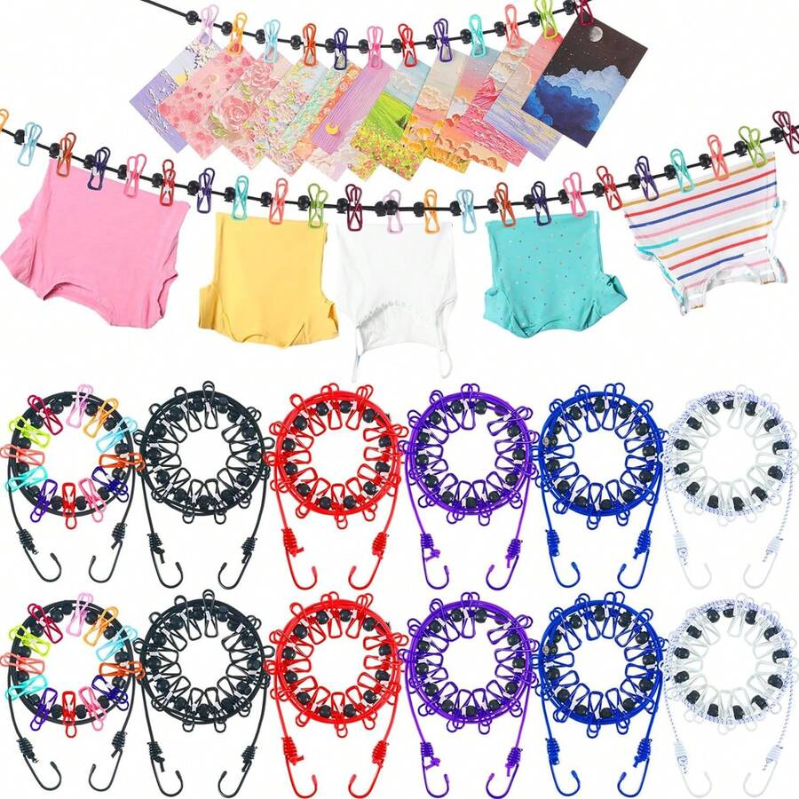 12pcs Portable Travel Clothesline Set, Retractable Clothesline, Clothes Line Outdoors, Retractable Clothesline Indoor, Portable Clothesline, Laundry Line, Drying Rack Clothing, Clotheslines For Outside, Camping Essentials, Cruise Ship Essentials